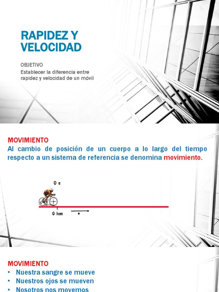 El concepto cotidiano de velocidad surge cuando apreciamos la rapidez o lentitud con que se mueve un cuerpo rapide. Velocidad y rapidez son términos que, aunque pueden funcionar como sinónimos en determinados contextos, no siempre significan lo mismo ni son intercambiables.