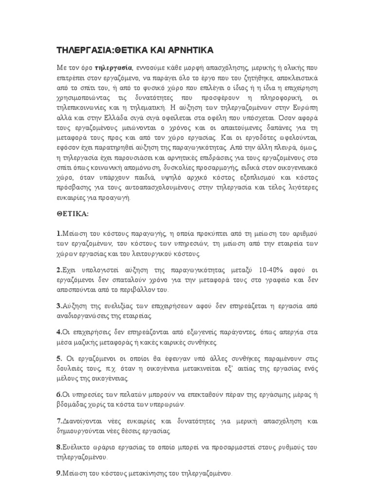 Thlergasia Ergasia Ma8htwn from image.slidesharecdn.com Η τηλεργασία δεν είναι ο ιδανικός τρόπος εργασίας για όλα τα επαγγέλματα, όπως αυτά που θεωρούν απαραίτητη προϋπόθεση την προσωπική επαφή ή τη χειρωνακτική εργασία. Η δημόσια παρουσίαση προϊόντων ή έργων τέχνης σε ειδικό χώρο. Ολα τα μέτρα στήριξης των επιχειρήσεων και των εργαζομένων ανα κατηγορία. Έκθεση τεκμηρίωσης για το αναγκαίο προσωπικό. Εξ' αποστάσεως εργασία και τηλεργασία. Για να μεταφερθείτε σε κάποια από τις σελίδες στις οποίες πραγματοποιείται αναλυτική παρουσίαση επιμέρους στοιχείων θεωρίας για την έκφραση έκθεση απλώς επιλέξτε τον αντίστοιχο σύνδεσμο. Η έκθεση δεν είναι ένα ασυνεχές και αδιαίρετο κείμενο, δεν αποτελείται από απλή, μηχανική παράθεση δεδομένων ή ιδεών. Σύμφωνα με την συνοδευτική έκθεση, το πιστοποιητικό:
